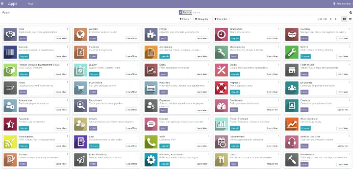 - ERP en Odoo: Odoo proporciona una amplia gama de aplicaciones de ERP que cubren áreas como contabilidad, inventario, compras, gestión de proyectos, recursos humanos y más. Estos módulos permiten a las empresas gestionar eficazmente todas sus operaciones y recursos.
